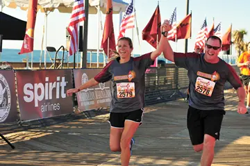 Realize that the finish line is exactly what you did months' worth of training for, and also be aware that it will probably be photographed. I did the basic one-fist-in-the-air pose. Some people jokingly crawl across the finish, some cartwheel across (I don't know how) and some hold hands with their partner. Whatever you do, make it special. You earned it.
